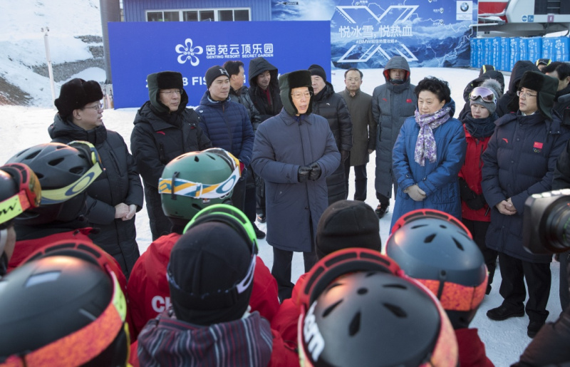 国务院副总理、第24届冬奥会工作领导小组副组长刘延东参加调研,并强调要按照习近平总书记关于群众体育、竞技体育、体育产业协调发展和建设体育强国的要求,统筹平昌冬奥会参赛和北京冬奥会筹办。要深化体育改革,创新训练,科学选才,全面提升竞技水平,建设过硬运动员教练员队伍;大力发展群众性冰雪运动,调动社会力量参与,积极有序实现“3亿人参与冰雪运动”;抓住冰雪产业发展机遇,深化供给侧结构性改革,培育新动能,增强人民群众获得感、幸福感,实现高质量发展。加强国际交流合作,坚持走出去与请进来相结合,打造一支专业化、国际化的人才队伍。要提升张家口教育、医疗水平,满足赛时赛事保障和公共服务需求。