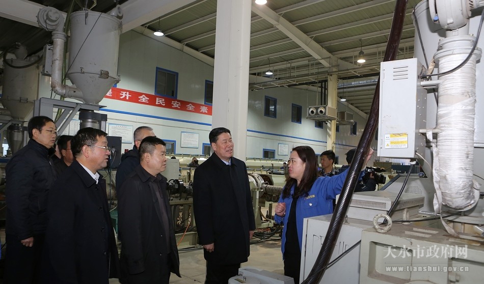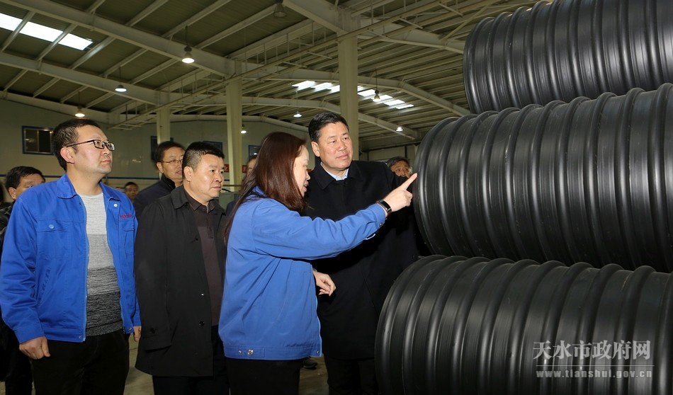 西北永新管业公司是一家集塑料管材产品研发、生产、销售等为一体的高新技术企业。王军来到生产车间和产品展览室,察看企业生产情况,并召开座谈会,听取企业经营情况,协调解决企业存在的困难和问题,并对下一步工作提出了建议。王军指出,近年来,西北永新管业公司为天水经济社会发展作出了积极贡献,目前企业生产经营存在一定困难,各相关部门要设身处地为企业解决发展难题和实际困难,支持企业健康发展。同时,企业要在巩固和提高产品质量的同时,加强营销团队建设,进一步开拓产品市场,促进企业不断发展、实力不断增强。