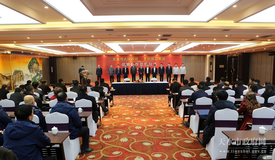 12月21日,天水市政府与北京环卫集团战略合作协议签约仪式在天水宾馆举行。此次战略合作协议的签订,标志着双方的合作迈出了实质性步伐,对于促进我市城乡环卫工作科学化、标准化、专业化发展必将产生积极影响。